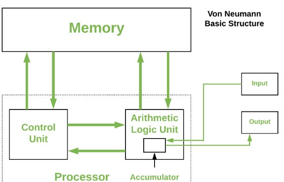 Von Neuman’s architecture that has played a significant role in modern computing architecture as well, an infographic: